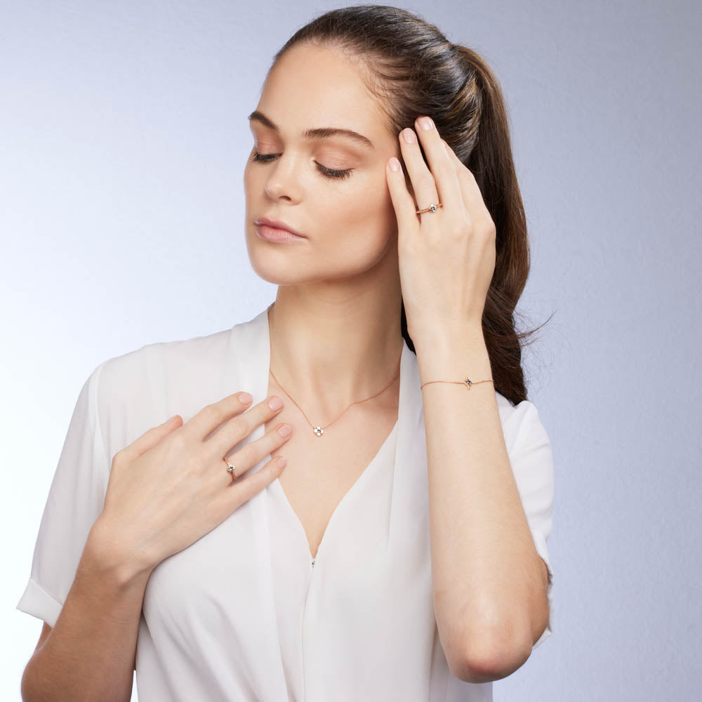 Giving luck to its wearer, our Misty Pendant features an Australian Sapphire within a four-leaf clover design. Misty is crafted in 9ct Rose, White and Yellow Gold.