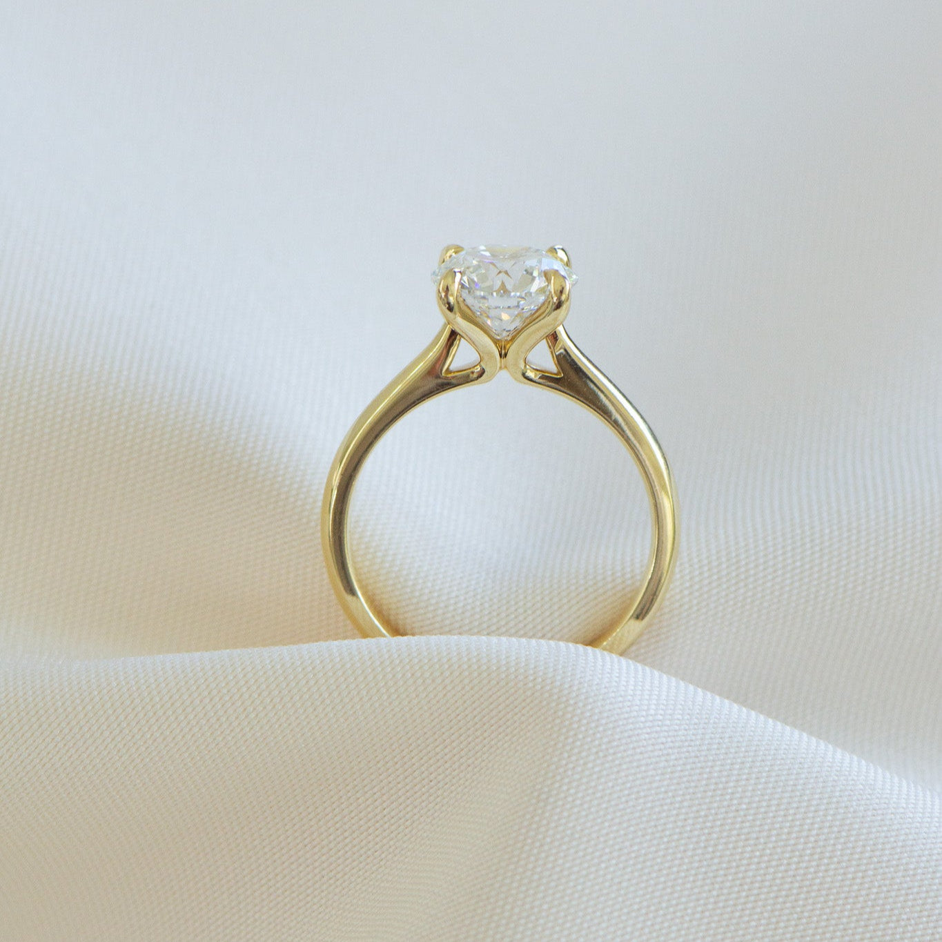 Elegantly set in a classic 18k yellow gold 4-claw setting, Vera epitomizes romance. The dazzling round diamond catches every glimmer of light, mirroring the love and devotion you share.