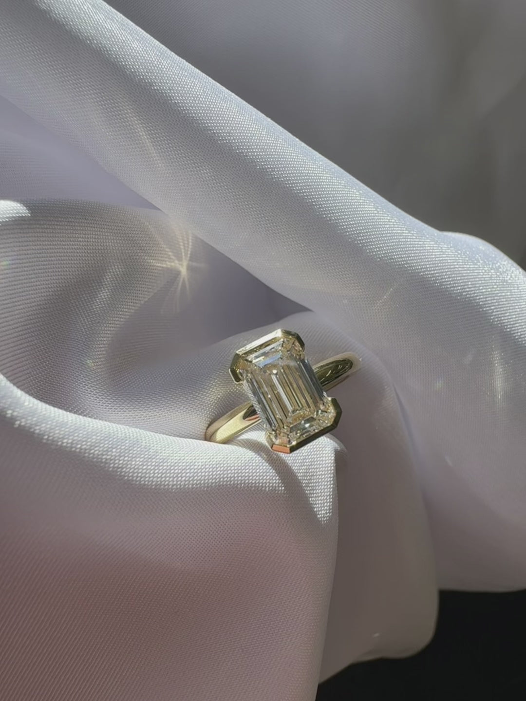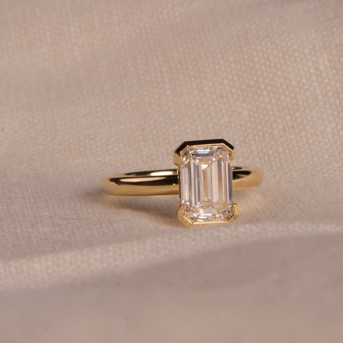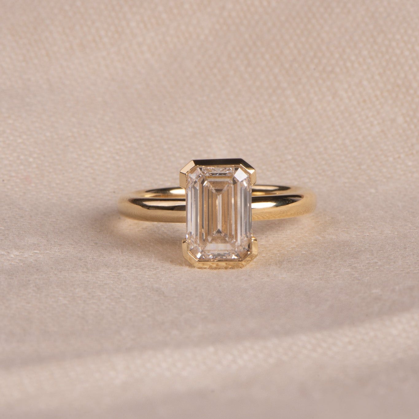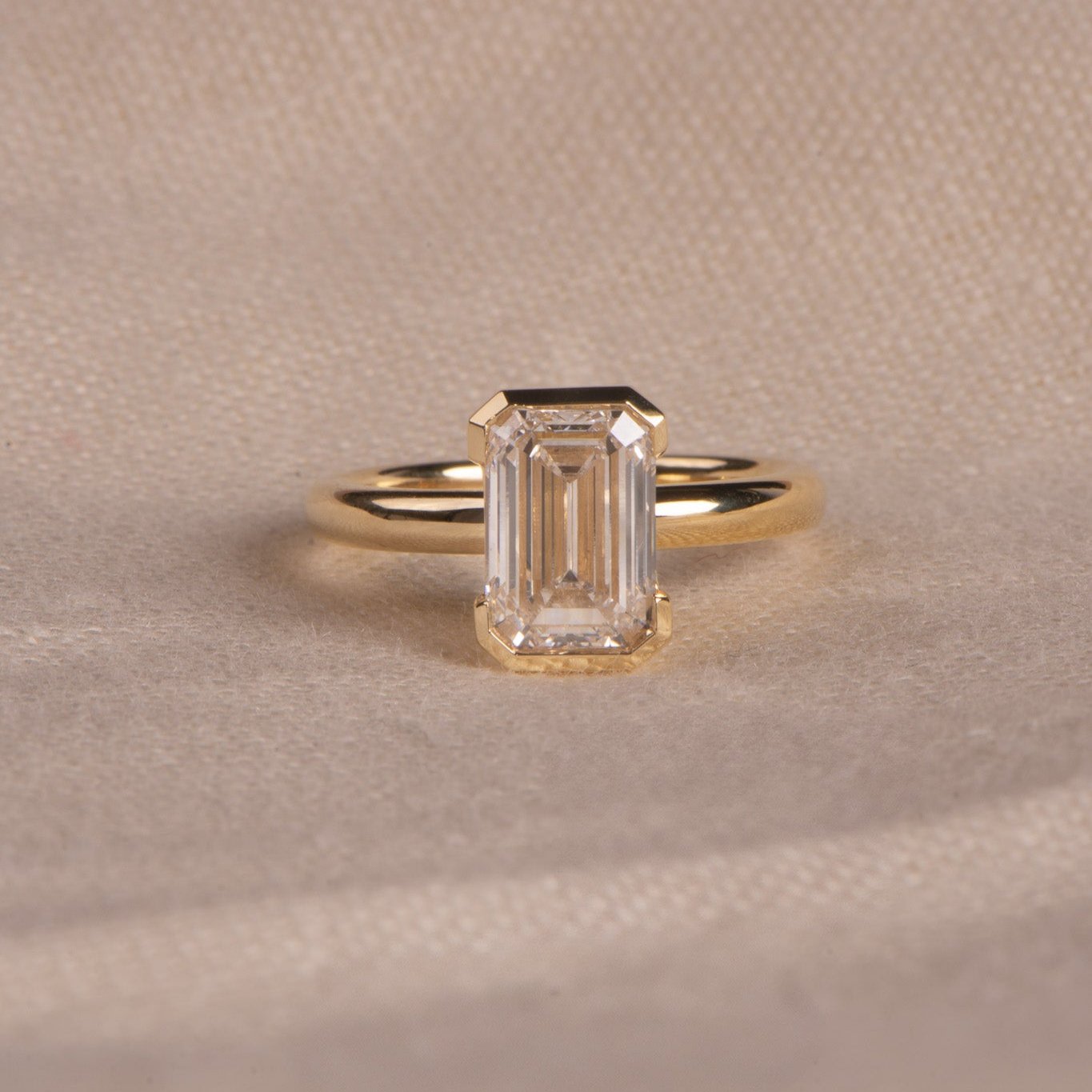 Edith | 2.79ct Half Bezel Emerald Cut Engagement Ring