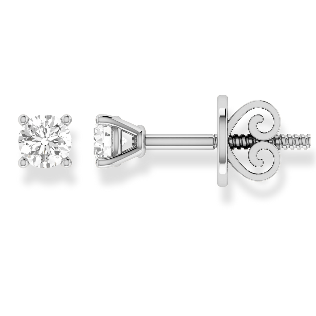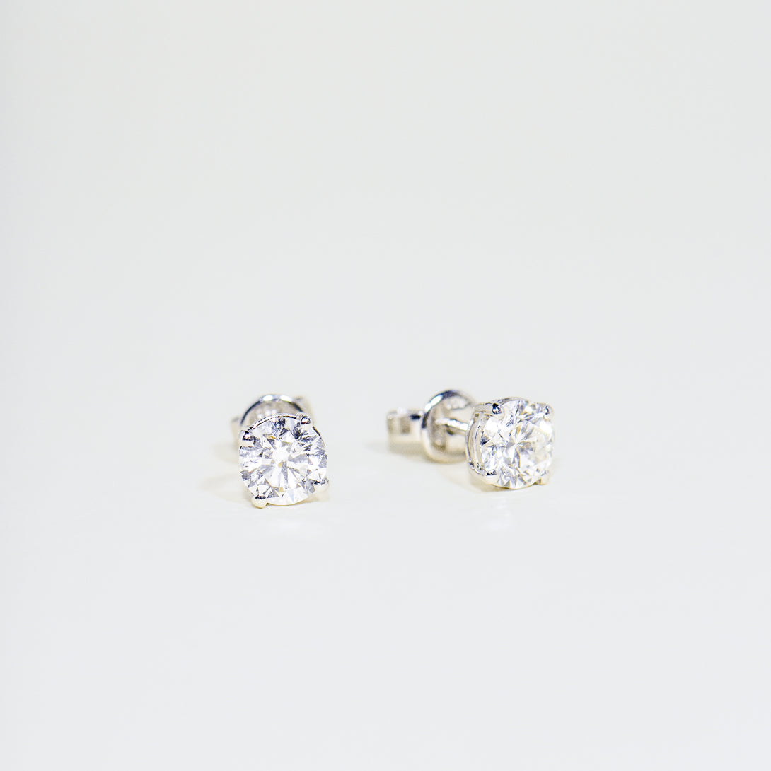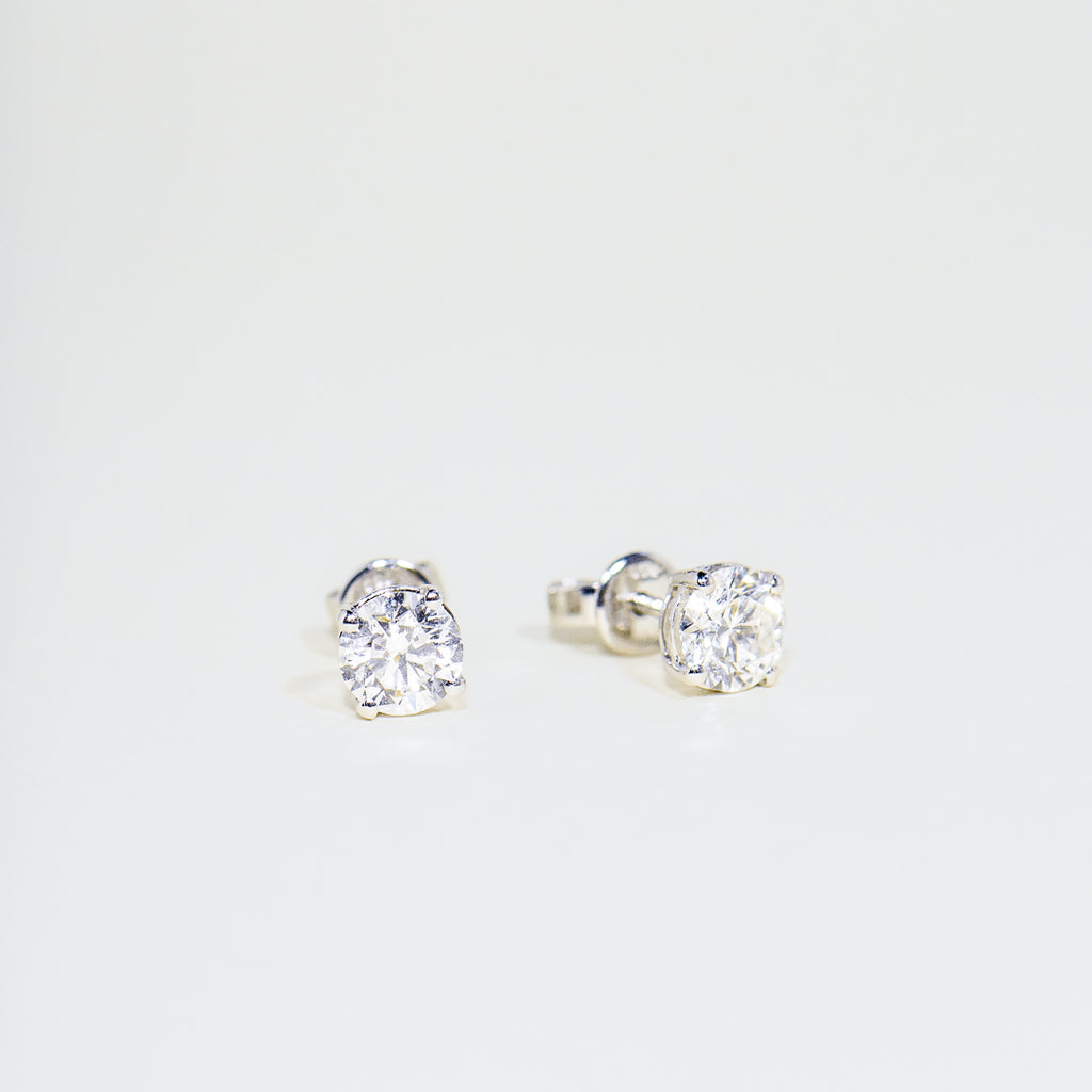 0.30ct, 0.50ct, 0.75ct and 1.00ct studs are only available in 18k white yellow or rose gold with threaded posts.