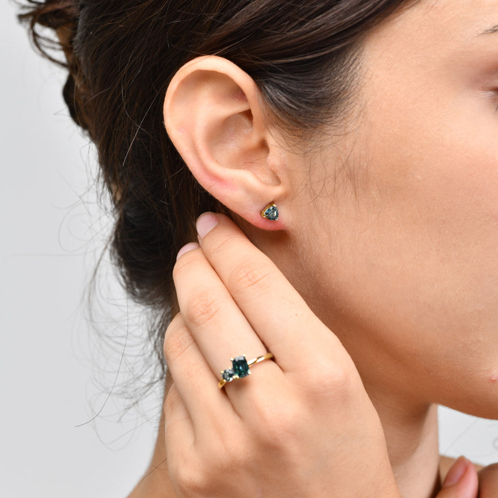 Maira 9ct Yellow Gold Australian Teal Sapphire Earrings - Matthews Jewellers
