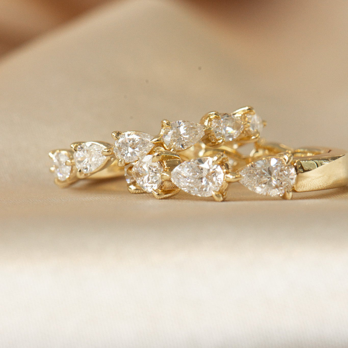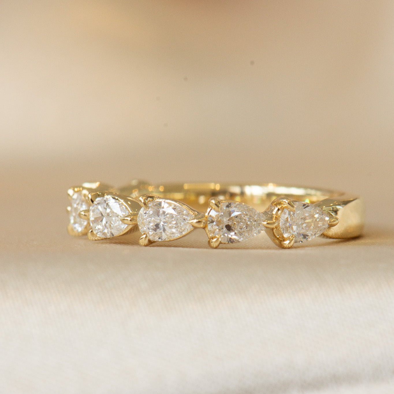 Featuring seven pear-shaped diamonds in a seamless shared-claw design, this ring is perfect for stacking with an engagement ring or wearing as a statement piece. Available in Small or Large options.